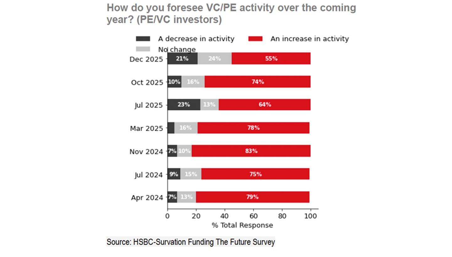 The latest edition of HSBC’s proprietary Funding the Future Survey, published in December, also found that confidence among VC investors has moderated slightly.
